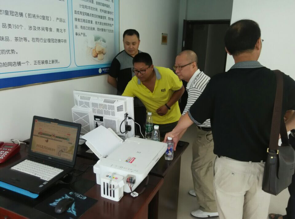 于梓潼縣薪能網(wǎng)絡(luò)科技有限公司辦公房,企業(yè)負(fù)責(zé)人現(xiàn)場向李建忠副局長、何江林副局長演示該企業(yè)電子商務(wù)平臺。