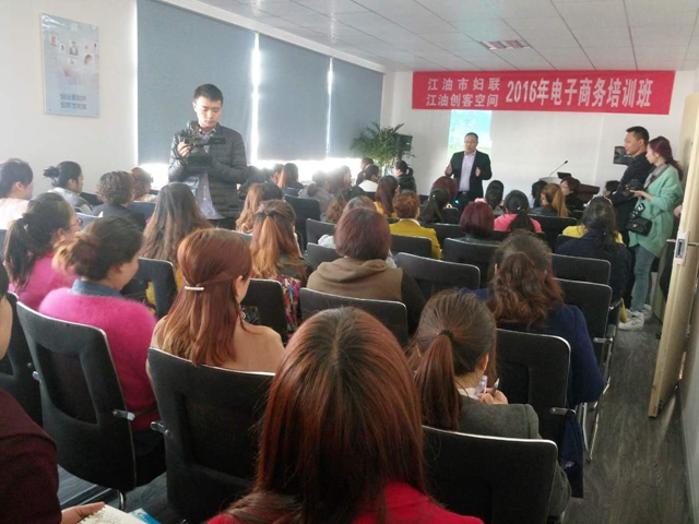 2016年3月18日,江油市創客空間迎來了江油市各鄉鎮的女性電子商務創業者100多名,參加培訓班的還有江油市婦聯歐主席、劉部長,中國網庫副總裁李琦、中國網庫導師王艷、導師張靜宇,創客空間經理鮮曉波,以及一些創客空間入孵企業代表,培訓會由創客空間經理鮮曉波主持。
