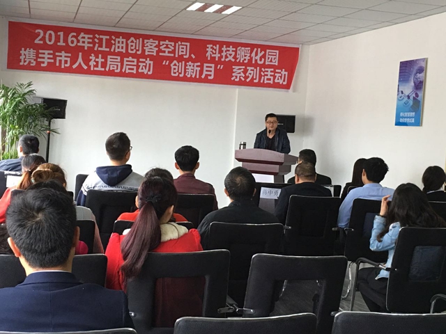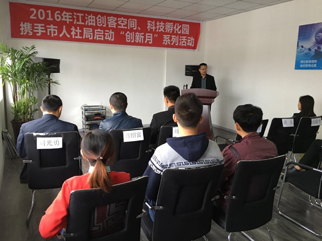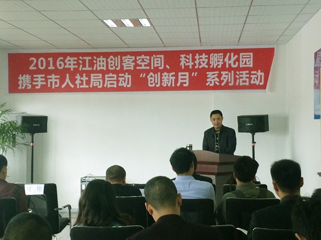 2016年4月8日,江油市創(chuàng)客空間和科技孵化園攜手市人力資源和社會(huì)保障局舉辦“創(chuàng)新月”政策培訓(xùn)會(huì),參加培訓(xùn)會(huì)的有市人社局人才中心主任蒲益、副主任郭建華、股長(zhǎng)蔣紹富、股長(zhǎng)劉光勇以及創(chuàng)客空間和科技孵化園的入孵企業(yè),培訓(xùn)會(huì)由創(chuàng)客空間經(jīng)理鮮曉波主持。
