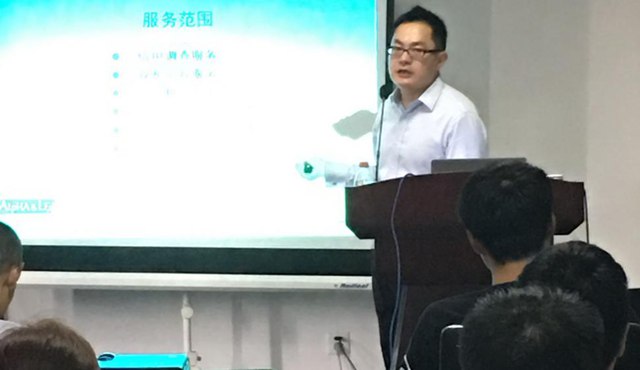 圖一:創(chuàng)客空間負(fù)責(zé)人鮮曉波介紹本次研討會