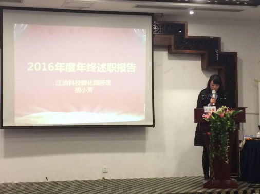 大會(huì)由公司董事長助理薛興泉主持,首先由江油、梓潼、鹽亭、興文、同心孵化器經(jīng)理、財(cái)務(wù)主管、兩會(huì)總經(jīng)理助理、行政部主任、董事長助理等作年終述職報(bào)告,隨后由董事長廖藝徽作重要講話和總結(jié),最后對2016年度涌現(xiàn)出的年度先進(jìn)集體、優(yōu)秀管理者、優(yōu)秀員工等進(jìn)行表彰。