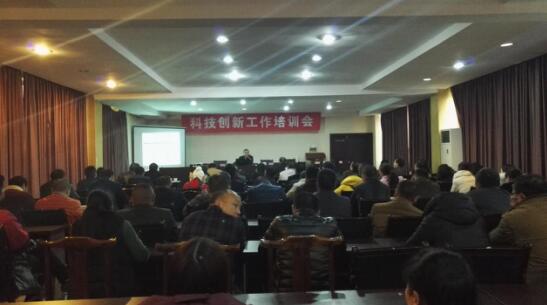 3月9日綿陽市科知局黨組書記、局長劉青川、副局長熊儀江帶領局班子成員及業(yè)務科室主要負責人一行16人到梓潼縣調(diào)研科技創(chuàng)新工作并開展科技創(chuàng)新業(yè)務培訓。我縣科技工業(yè)商務局局長張崇榮、副局長江賢友、股長趙錦霞及各科室負責人、梓潼縣高新技術企業(yè)、知識產(chǎn)權試點企業(yè)、高新技術培育企業(yè)、孵化器等單位具體負責人100多人參加培訓會。
