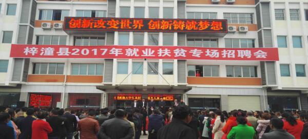 為促進我縣貧困家庭人員和農村富余勞動力就近就地轉移就業,促進縣域經濟發展,梓潼縣人社局決定于3月29日在梓潼縣科技孵化中心召開“就業扶貧縣內企業專場招聘會”梓潼縣長賀旺、副縣長鄧志軍、人社局局長王杉、副局長馬林全、經開區副主任張銳等領導出席了此次招聘會。各鄉鎮組織派專人帶領本地貧困家庭勞動者和農村富余勞動力積極參次招加本聘會。