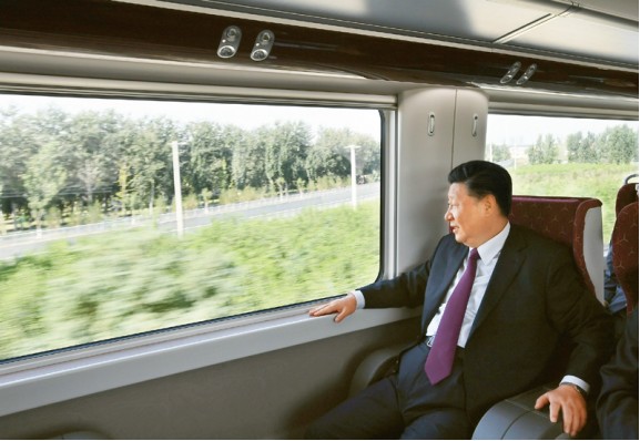 2019年9月25日上午,北京大興國際機場投運儀式在北京舉行。中共中央總書記、國家主席、中央軍委主席習近平出席儀式,宣布機場正式投運并巡覽航站樓。這是習近平乘坐軌道列車前往北京大興國際機場。新華社記者 謝環馳/攝