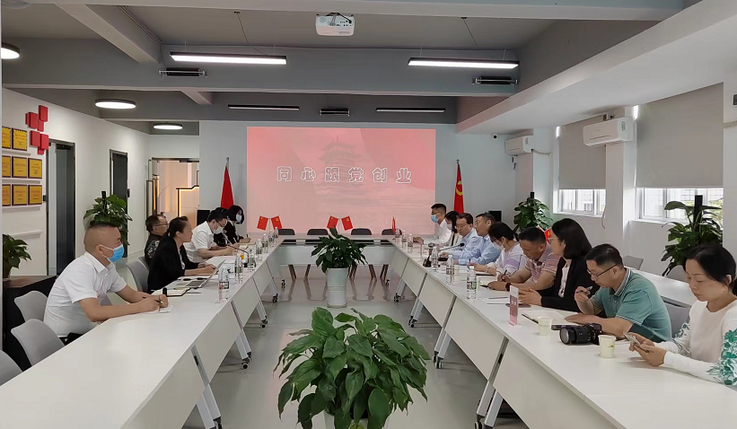 公司董事長廖藝徽代表全體員工對市監局對同心協同創新園的親切關懷、支持表示感謝!并表示:同心協同創新園要更加堅定跟黨創業,為黨的二十大召開獻上同心協同創新園的一份力量!